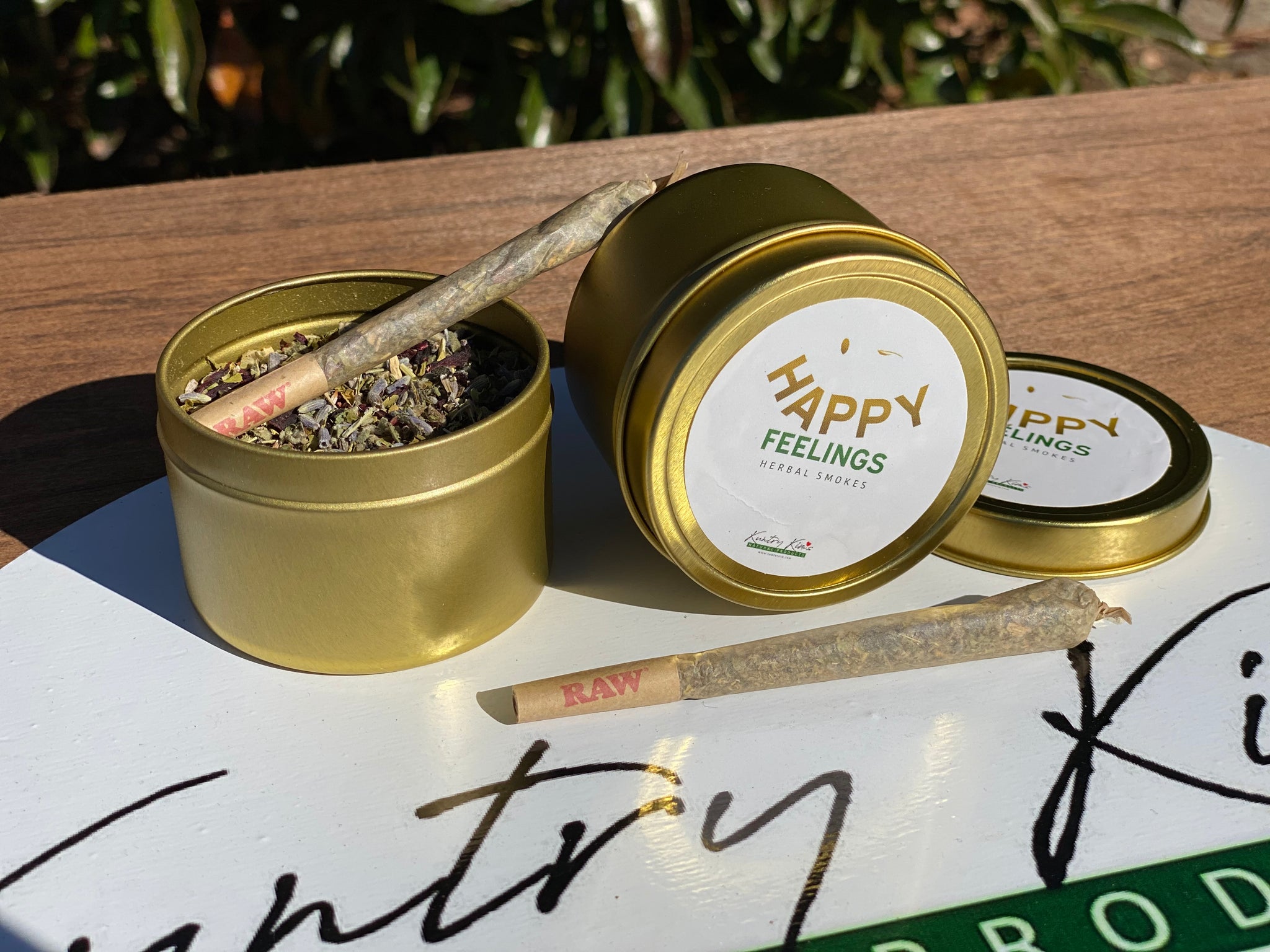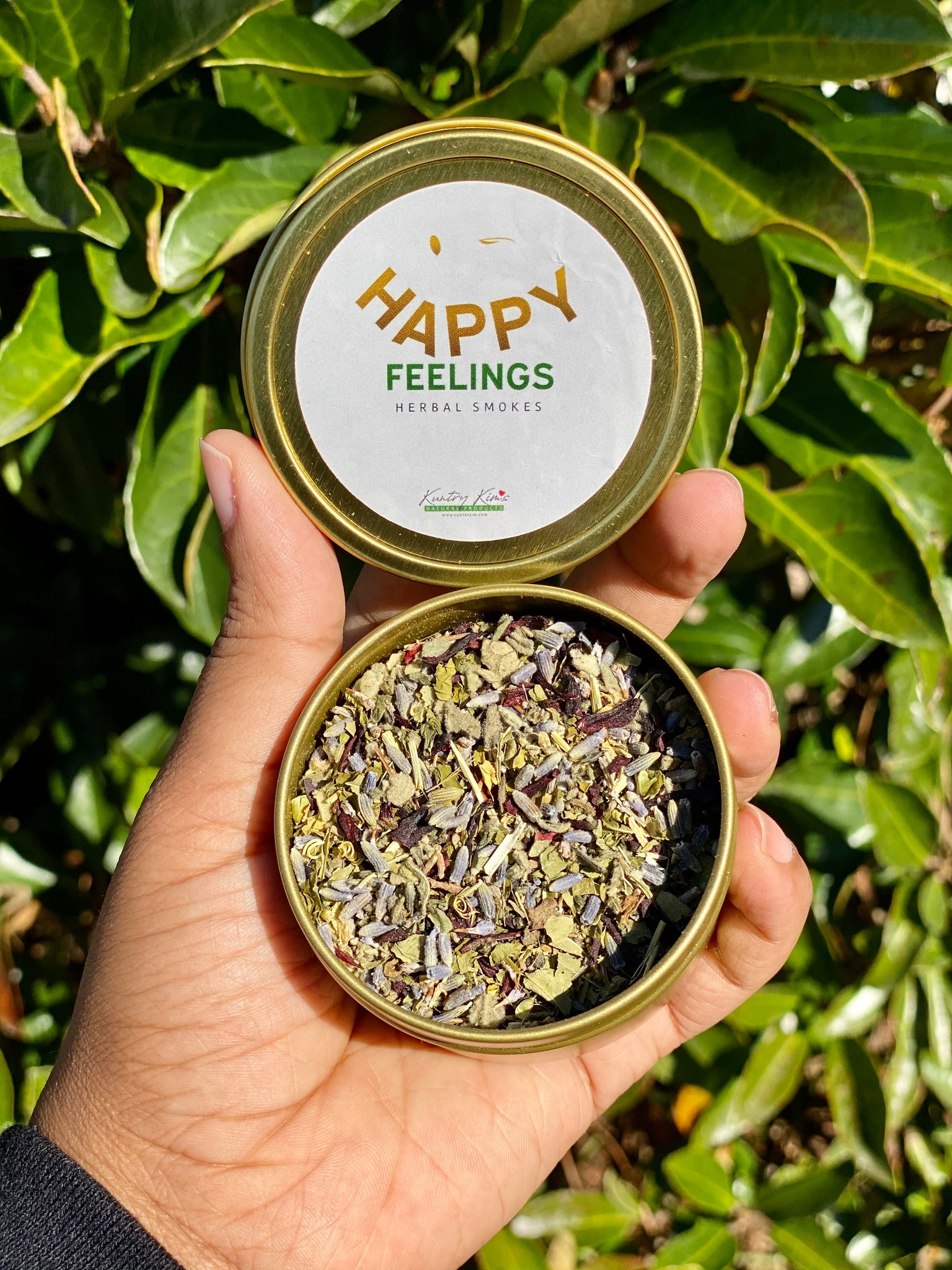 Happy Feelings smoking herb I created these different blends to help cleanse the lungs of those with respiratory problems.. also for those who like to smoke a lil something to calm their nerves. Designed with all natural legal herbs that are easy on the lungs. If cannabis is legal in your area feel free to add with blend 💚